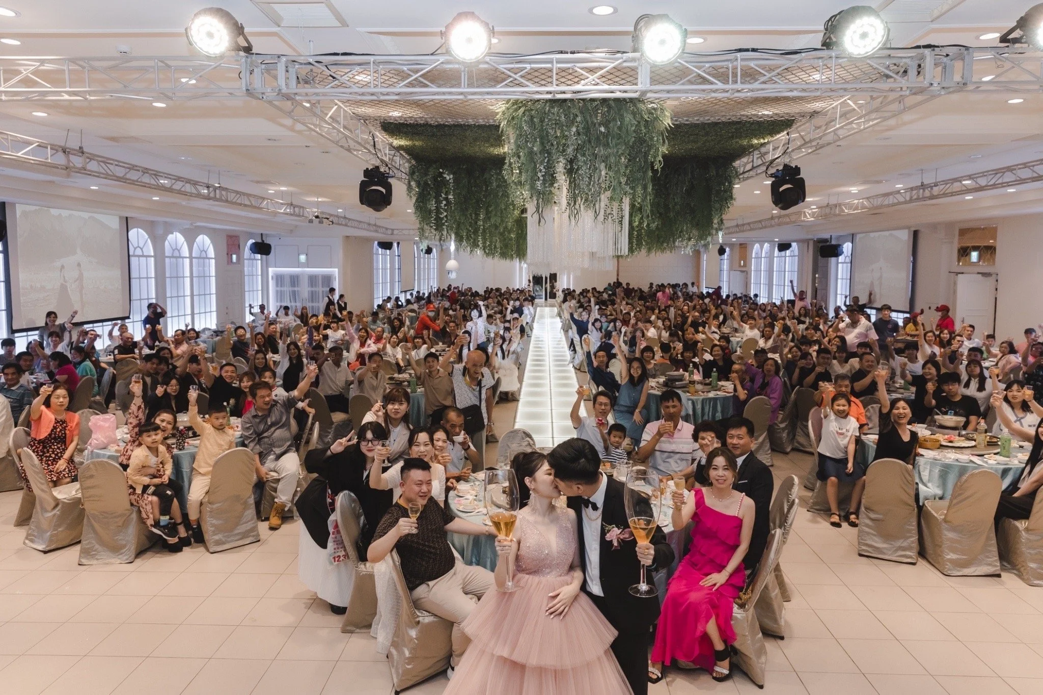 除了在自宅舉辦呷辦桌外,或許選擇租借婚宴會館才能夠擁有這樣的體驗。